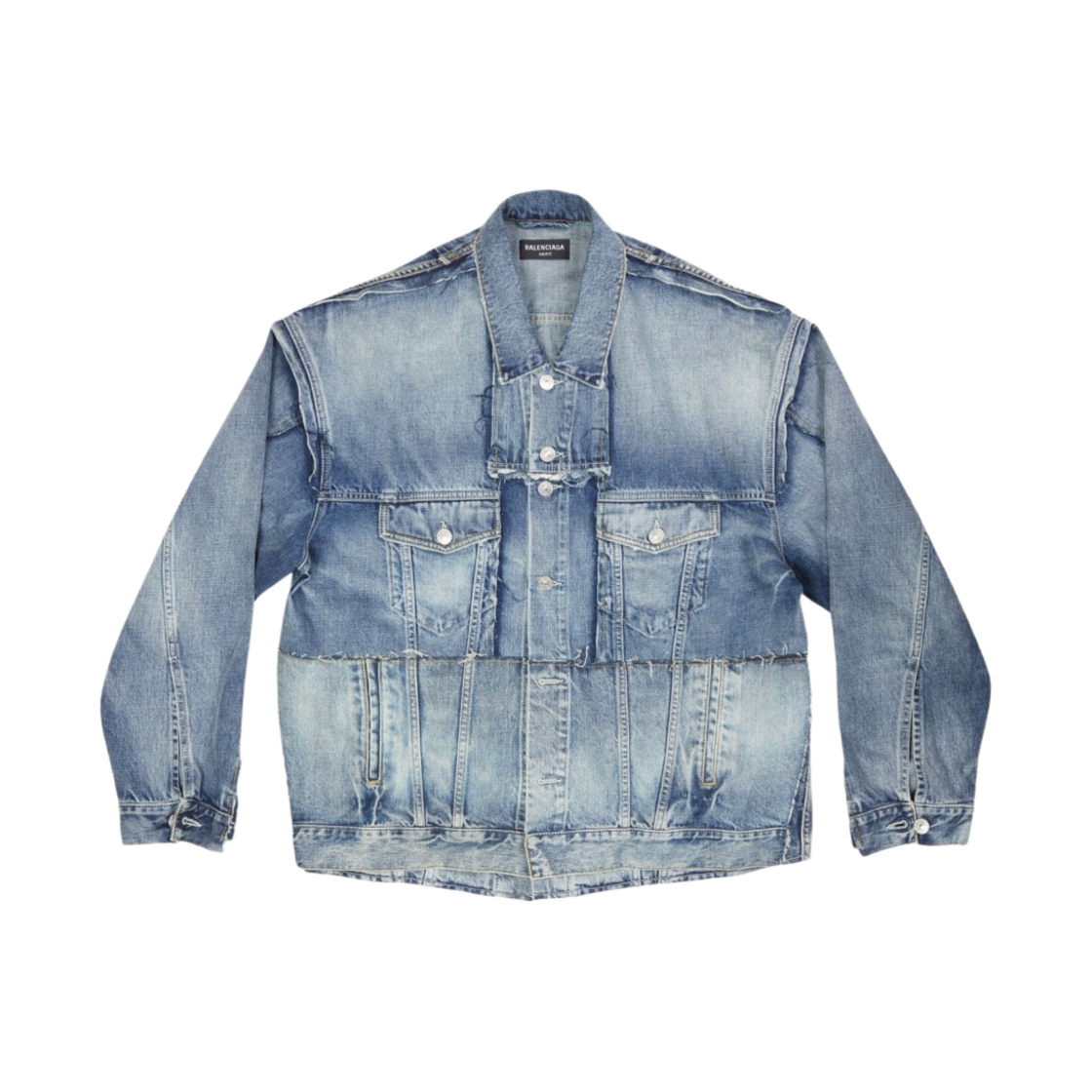Balenciaga Oversized Cut-Up Ring Denim Jacket Blue