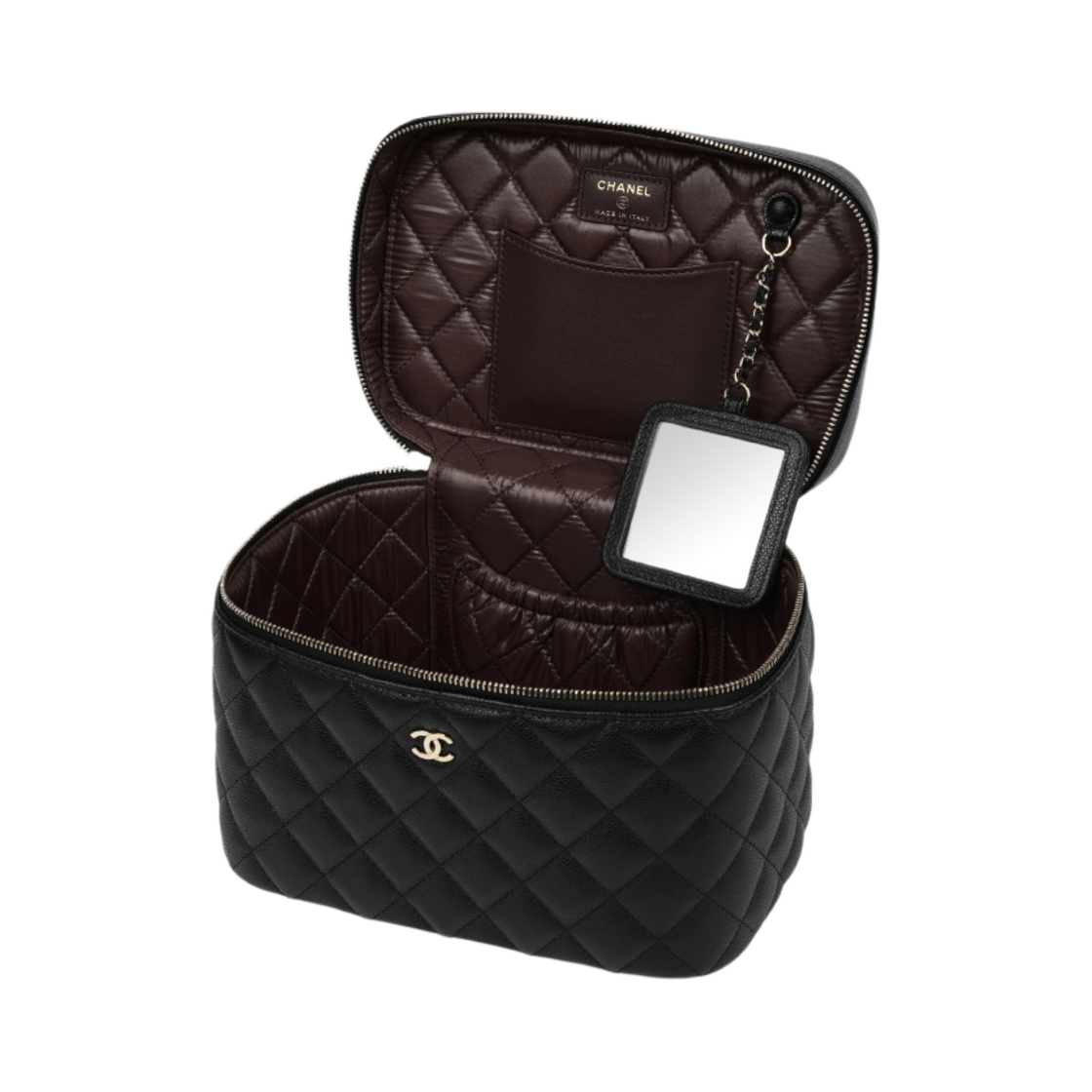 샤넬 클래식 코스메틱 파우치 그레인드 샤이니 카프스킨 & 골드 메탈 블랙