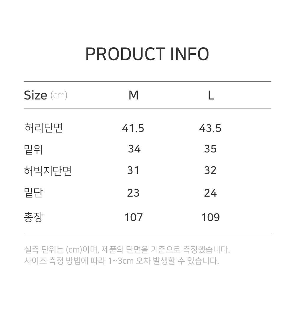 | 허리단면 | 밑위 | 허벅지단면 | 밑단 | 총장 |