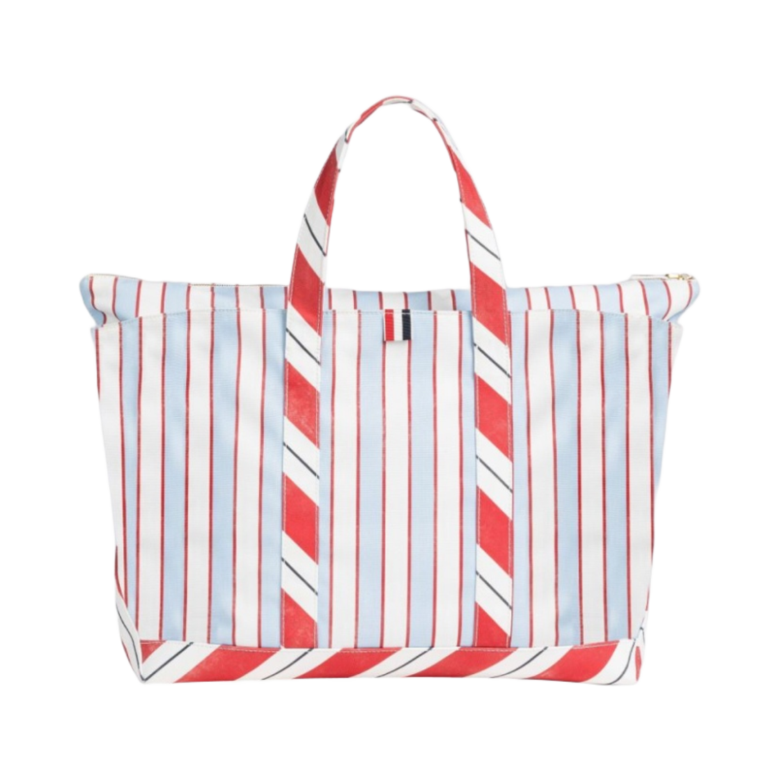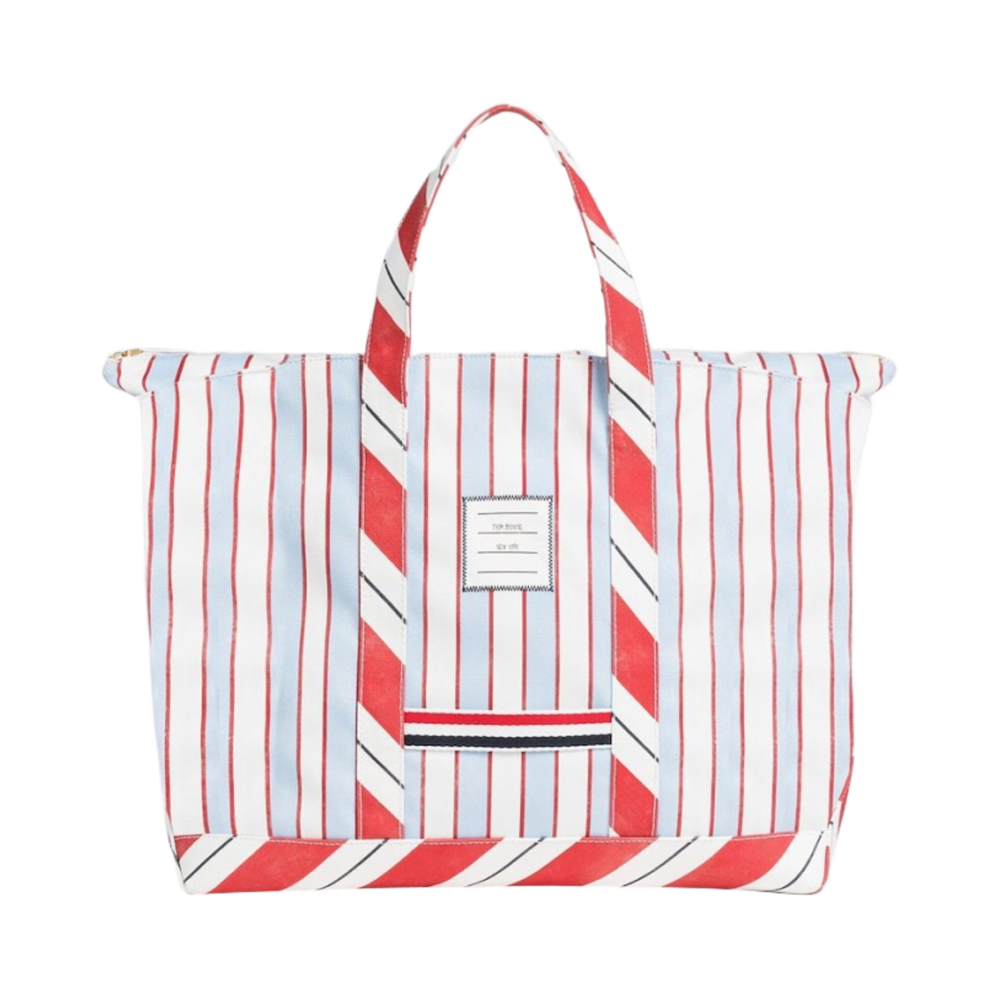Thom Browne Washed Striped Canvas Medium Tool Tote Bag Light Blue