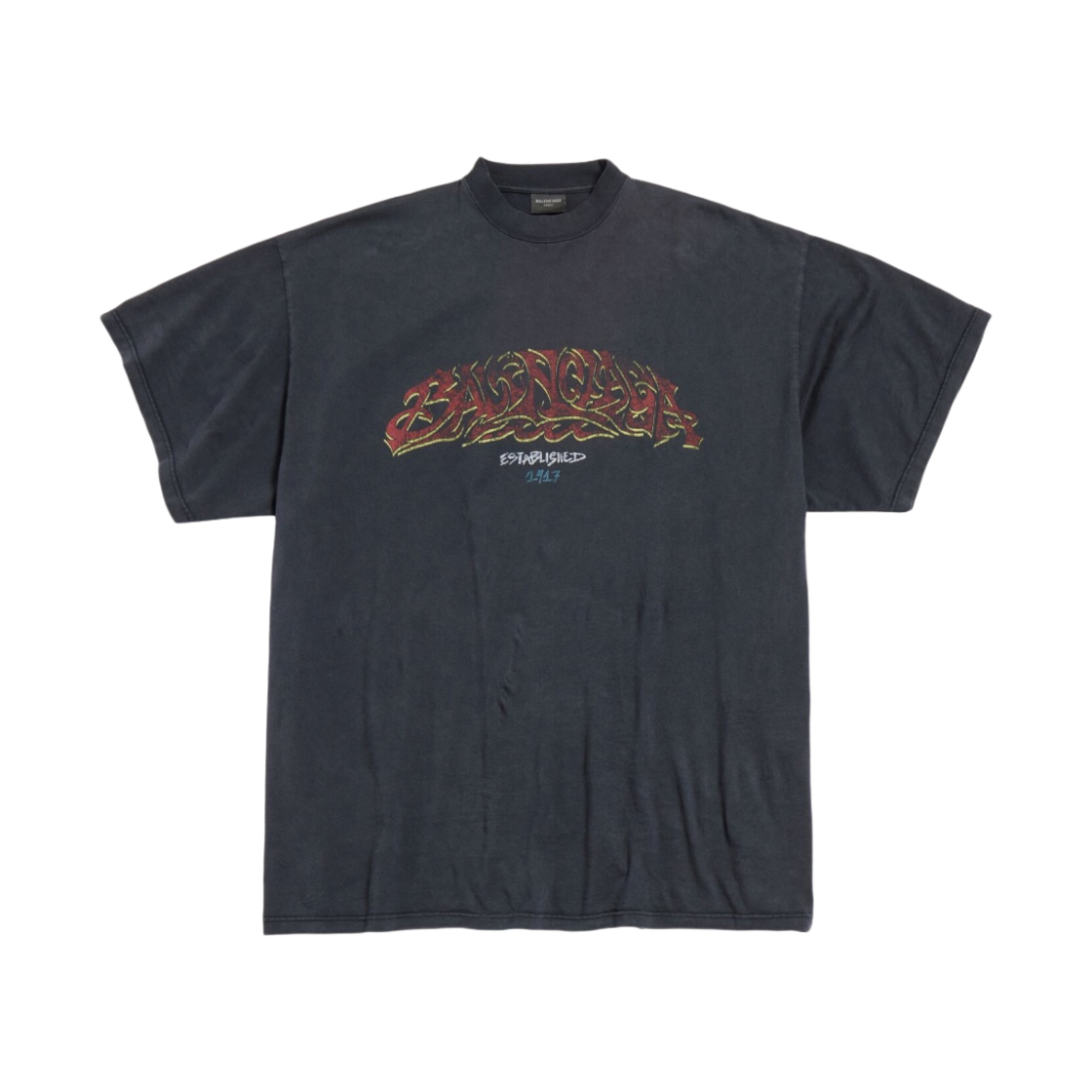 발렌시아가 오프쇼어 오버사이즈드 티셔츠 블랙 페이디드