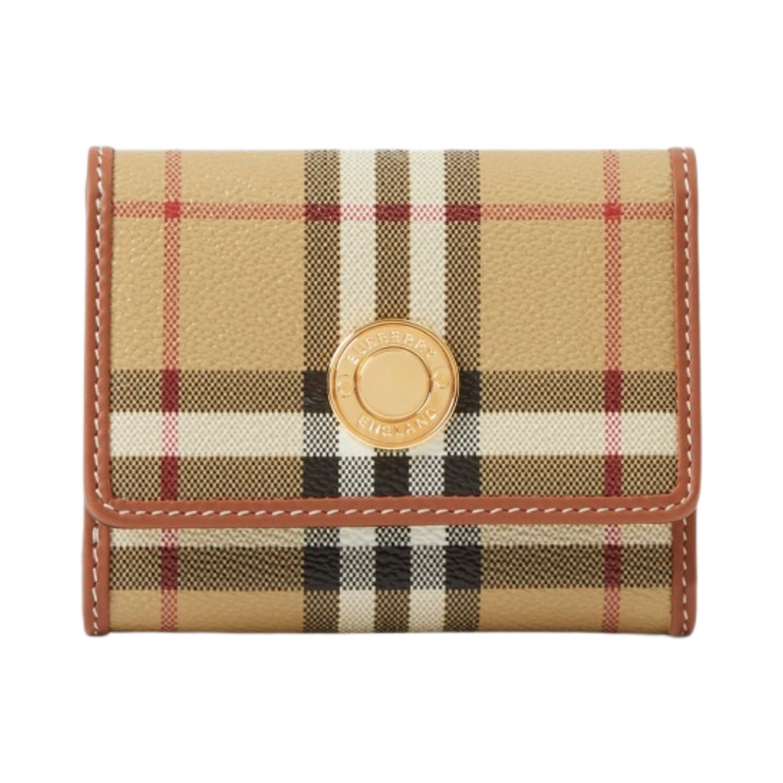 버버리 체크 레더 스몰 폴딩 지갑 아카이브 베이지
