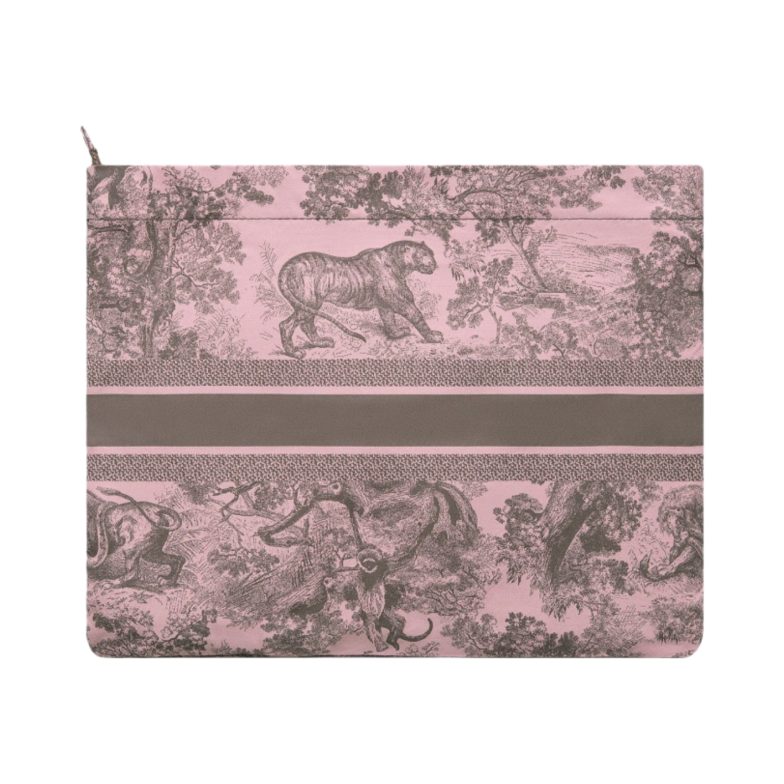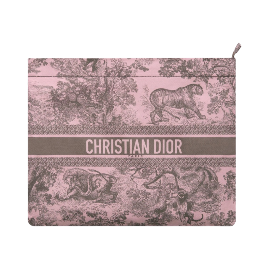 Dior Toile de Jouy Sauvage Motif Technical Fabric Travel Zipped Pouch Pink Grey