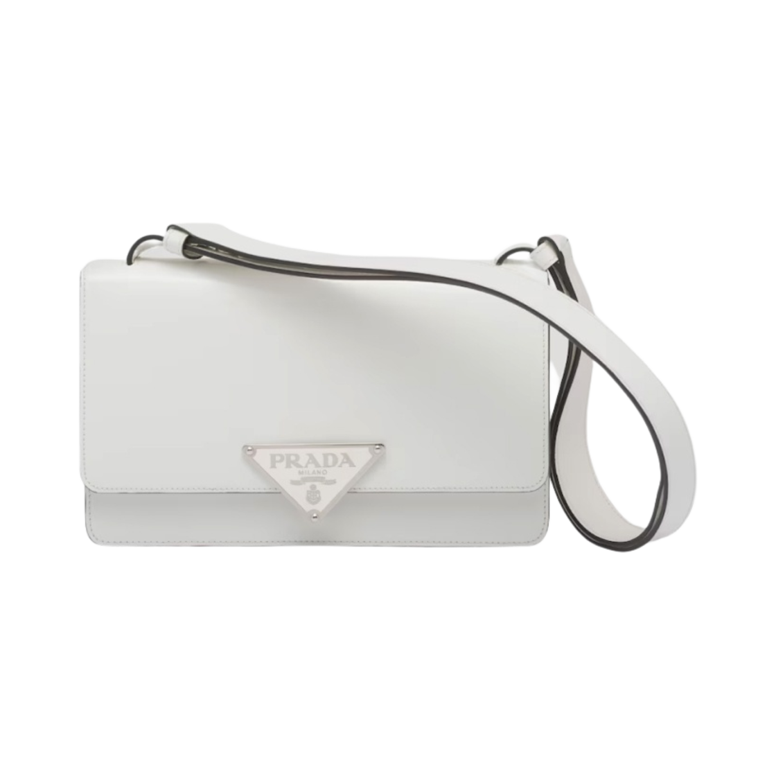 프라다 엠블럼 브러쉬드 레더 백 화이트