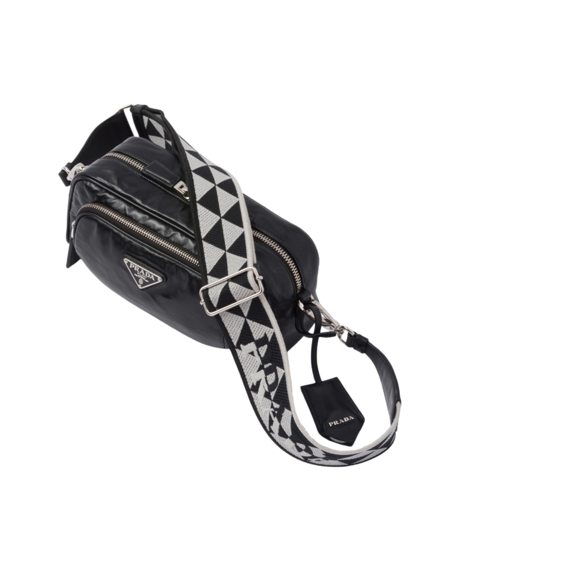 Prada Nappa Antique Leather Multi-Pocket Shoulder Bag Black