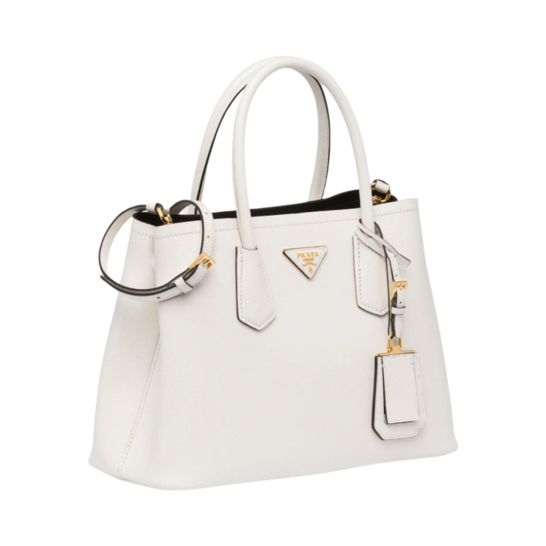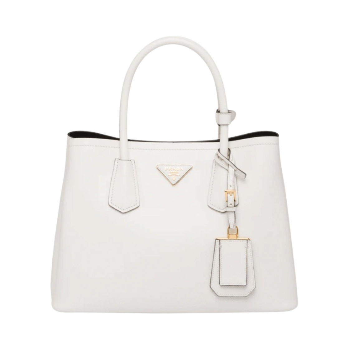프라다 스몰 사피아노 레더 더블 백 화이트 블랙