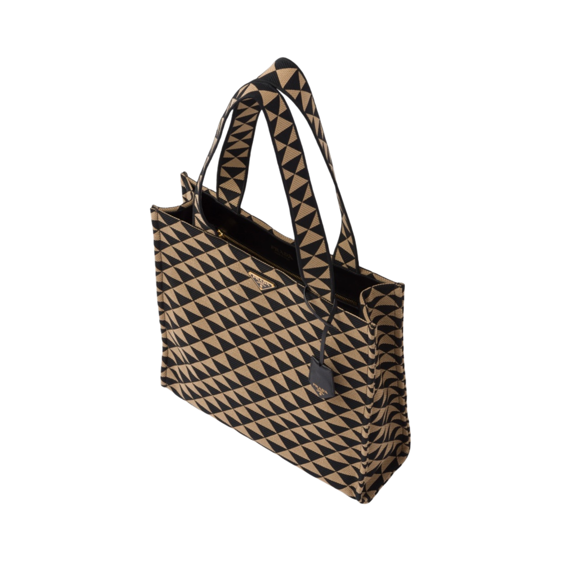 Prada Symbole Bag In Embroidered Fabric Black Beige