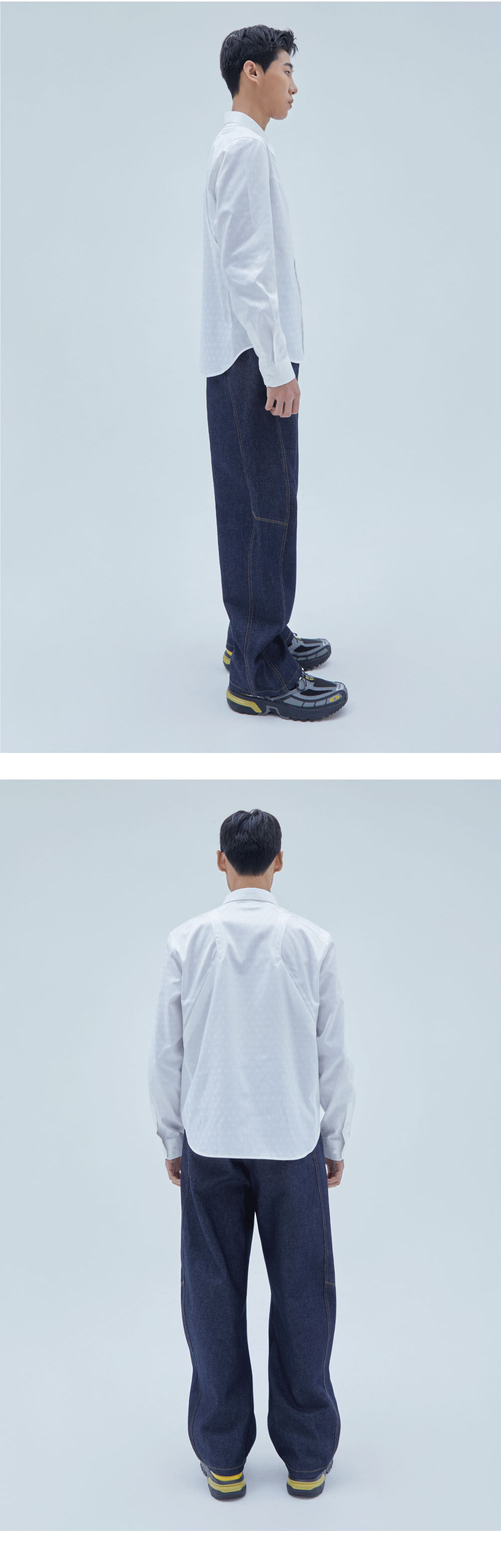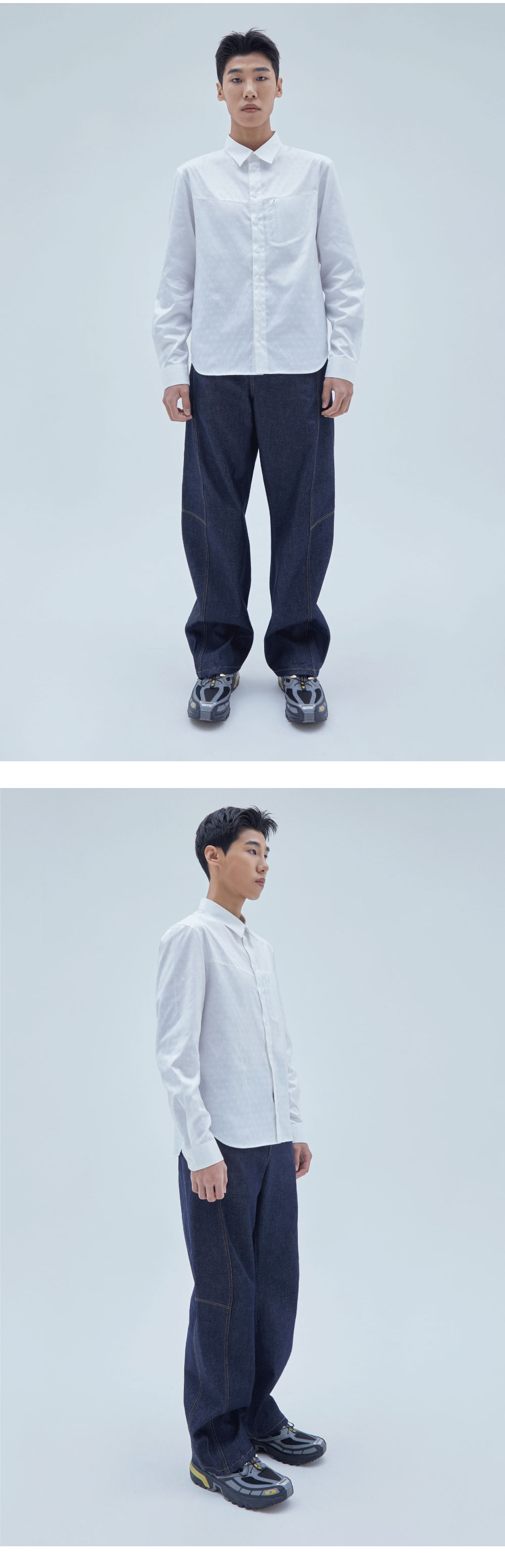 The model is 183 cm tall and is wearing a size M. DETAILS * Indigo color * Kipas denim (made in Türkiye) * Relaxed fit * YKK zip fly * 3 panel structure 사계절 착용할 수 있는 적당한 두께감의 셀비지 데님입니다. 셀비지 데님의 특성상 물 빠짐은 항상 존재하며, 시간이 지남에 따라 착용자의 신체 특성에 맞춰 에이징 됩니다. YKK 지퍼 플라이, 헬릭스클로딩의 폰트가 각인된 흔들이 단추가 사용되었습니다. 기존의 팬츠와 다르게 앞, 옆, 뒤 총 3판으로 패턴이 구성되어 있습니다. 무릎을 포인트로 앞으로 튀어나오는 듯한 실루엣을 완성하였으며 편안한 착용감을 제공합니다.