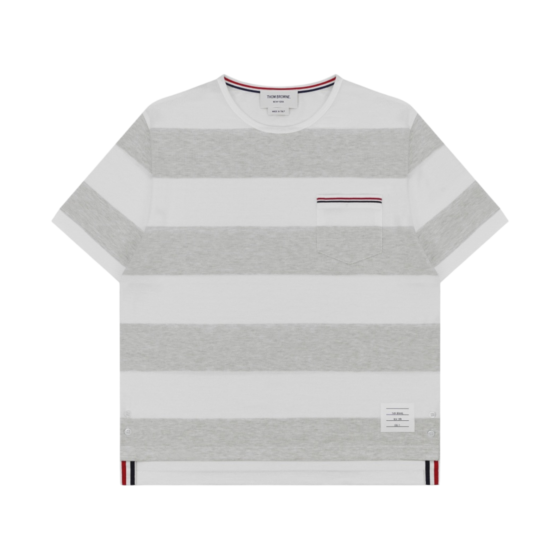 Thom Browne Rugby Stripe Pique Oversized Pocket T-Shirt Pale Grey White
