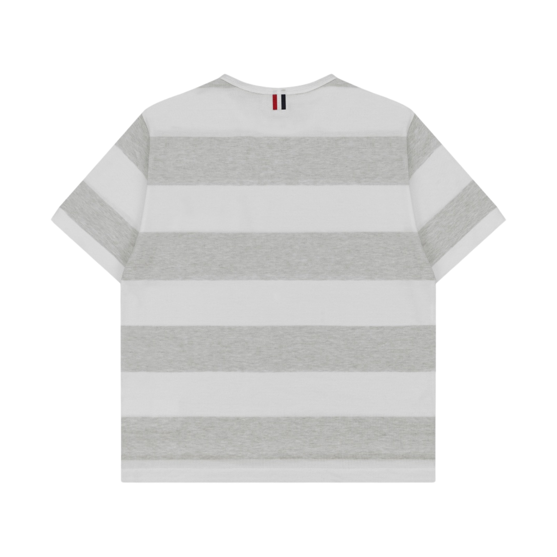 톰브라운 럭비 스트라이프 피케 오버사이즈 포켓 티셔츠 페일 그레이 화이트