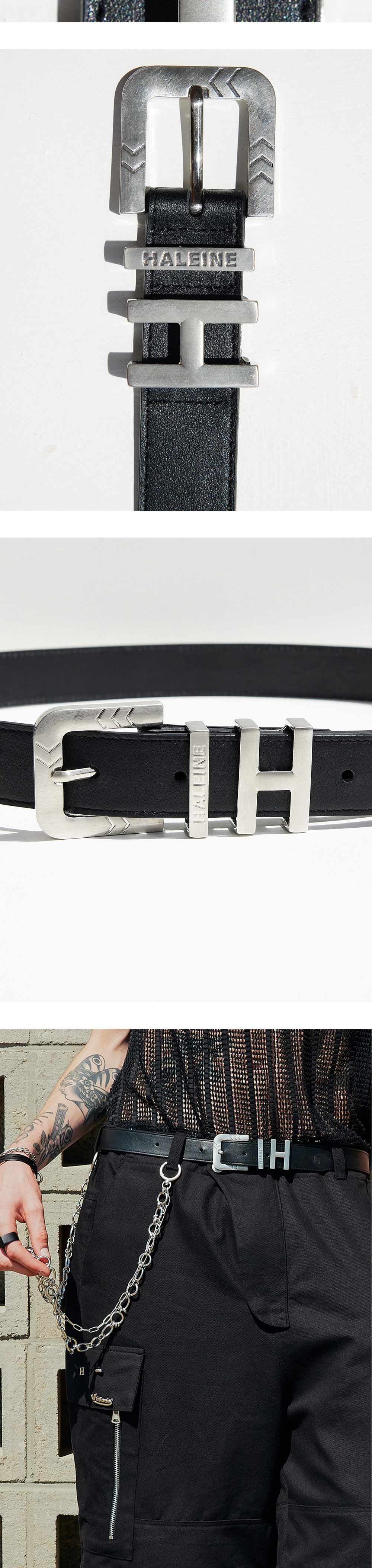스크래치 가공된 메탈 장식으로 포인트를 준 벨트입니다. 볼드한 금속 장식으로 y2k 스타일을 표현하였습니다. -DETAIL- 심플한 디자인에 자체 개발한 볼드한 메탈 장식으로 포인트