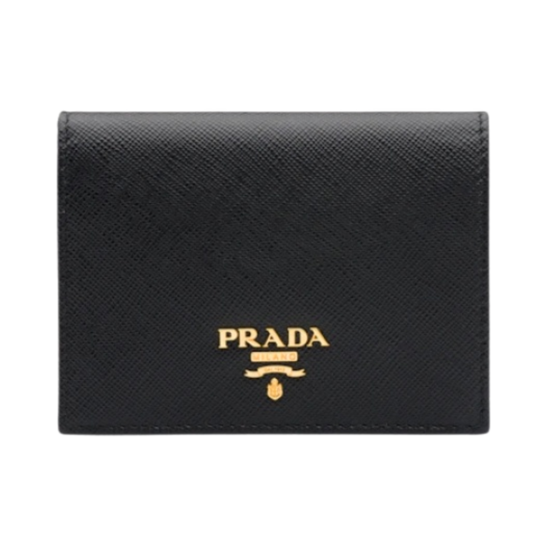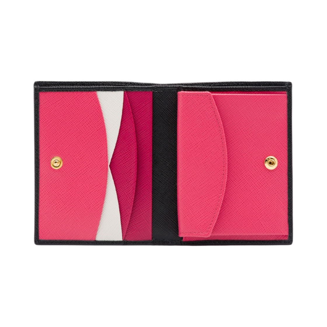 Prada Small Saffiano Leather Wallet Black Hibiscus