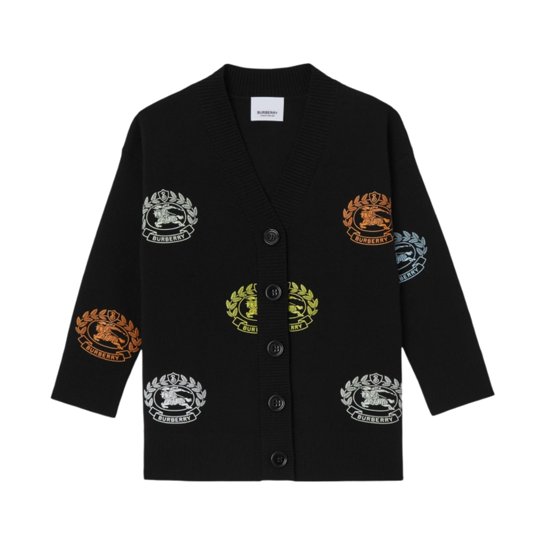 (Kids) Burberry EKD Print Technical Wool Cardigan Black