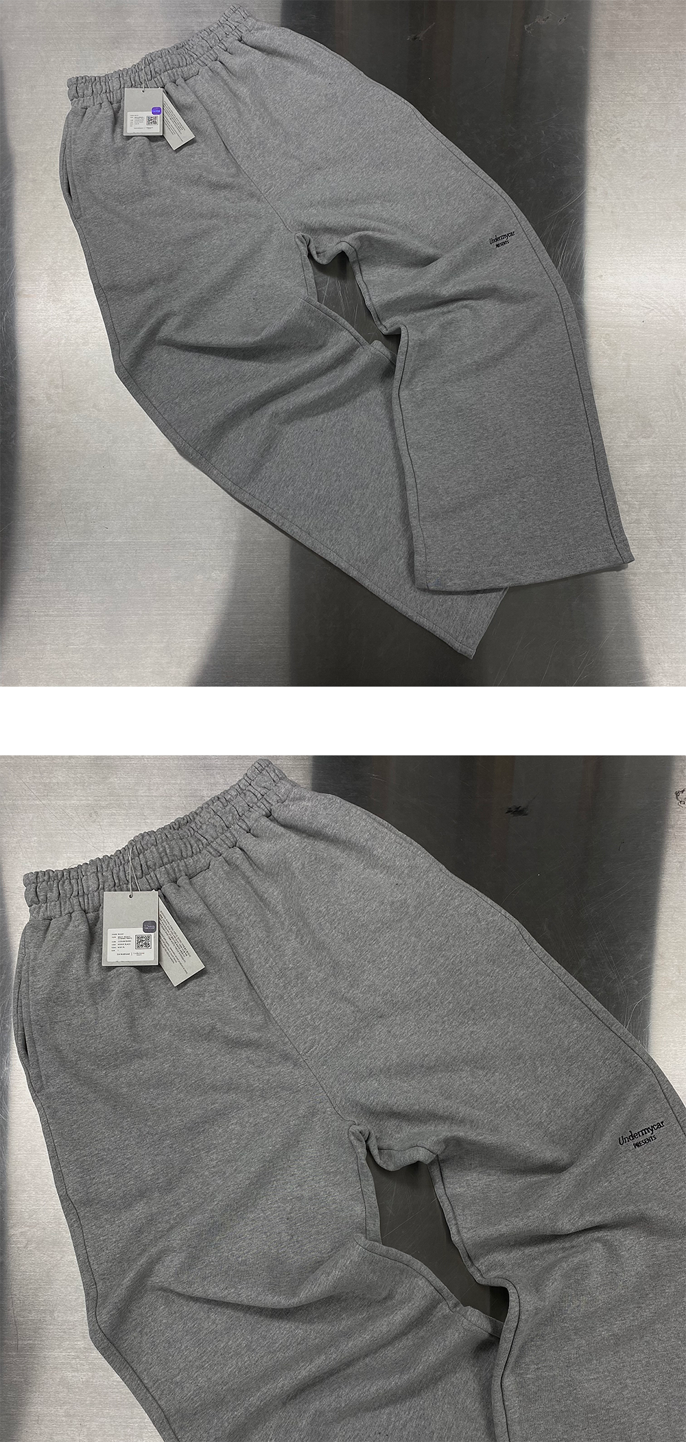언더마이카 무.01 안티 Fxxking 로고 플레이 오버사이즈 스웨트팬츠 멜란지 그레이