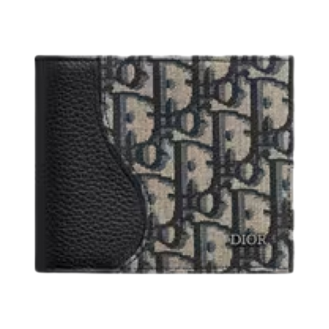 디올 새들 지갑 그레인드 카프스킨 레더 마르퀘트리 베이지 & 블랙 디올 오블리크 자카드 블랙