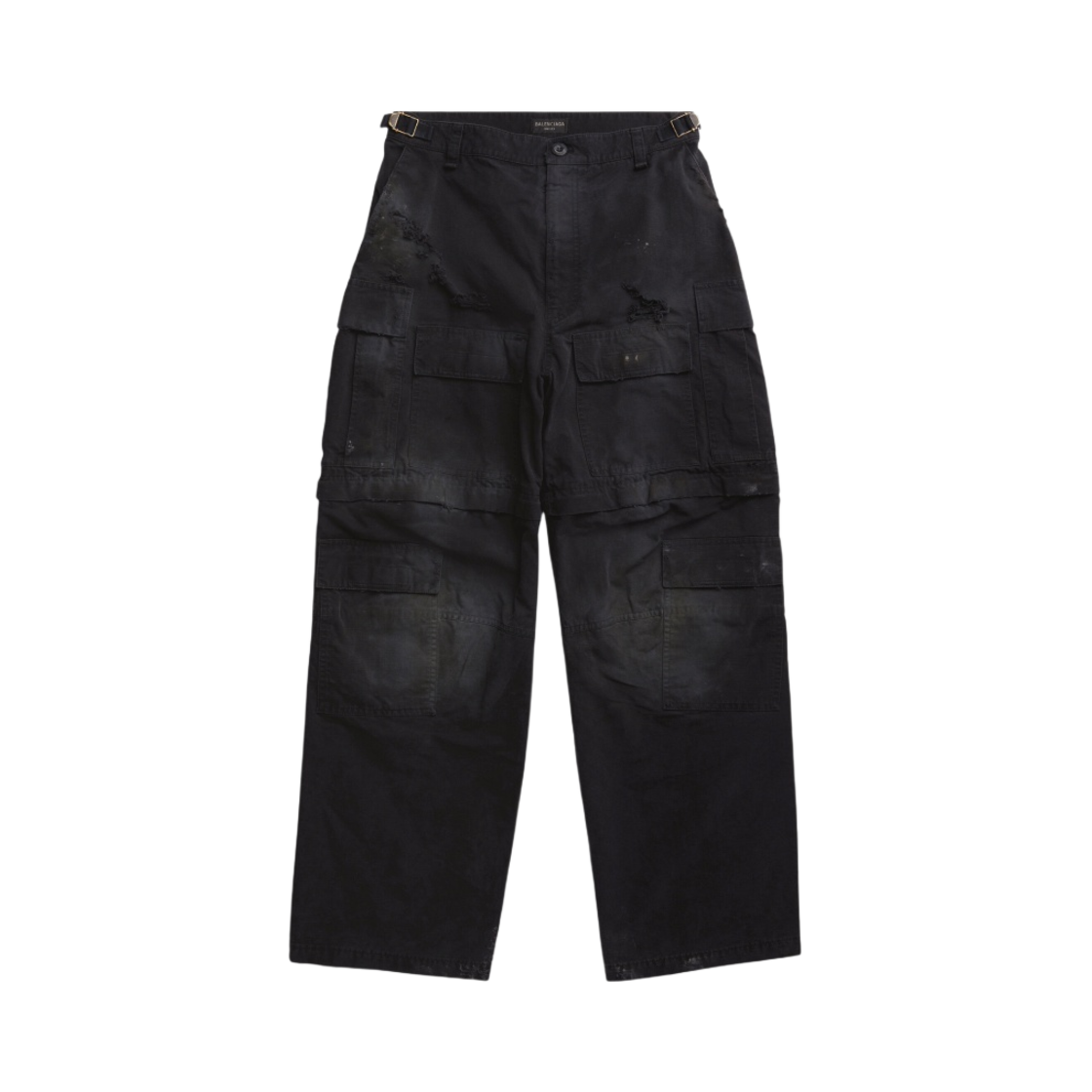 발렌시아가 코튼 립스탑 라지 핏 카고 팬츠 블랙