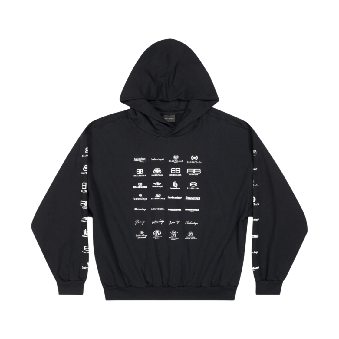 Balenciaga Archives Logos Hoodie Medium Fit Black