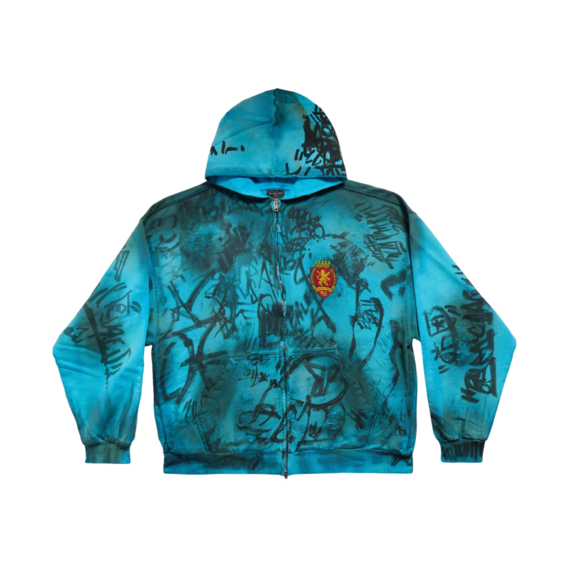Balenciaga Skater Zip-Up Hoodie Medium Fit Blue Sky