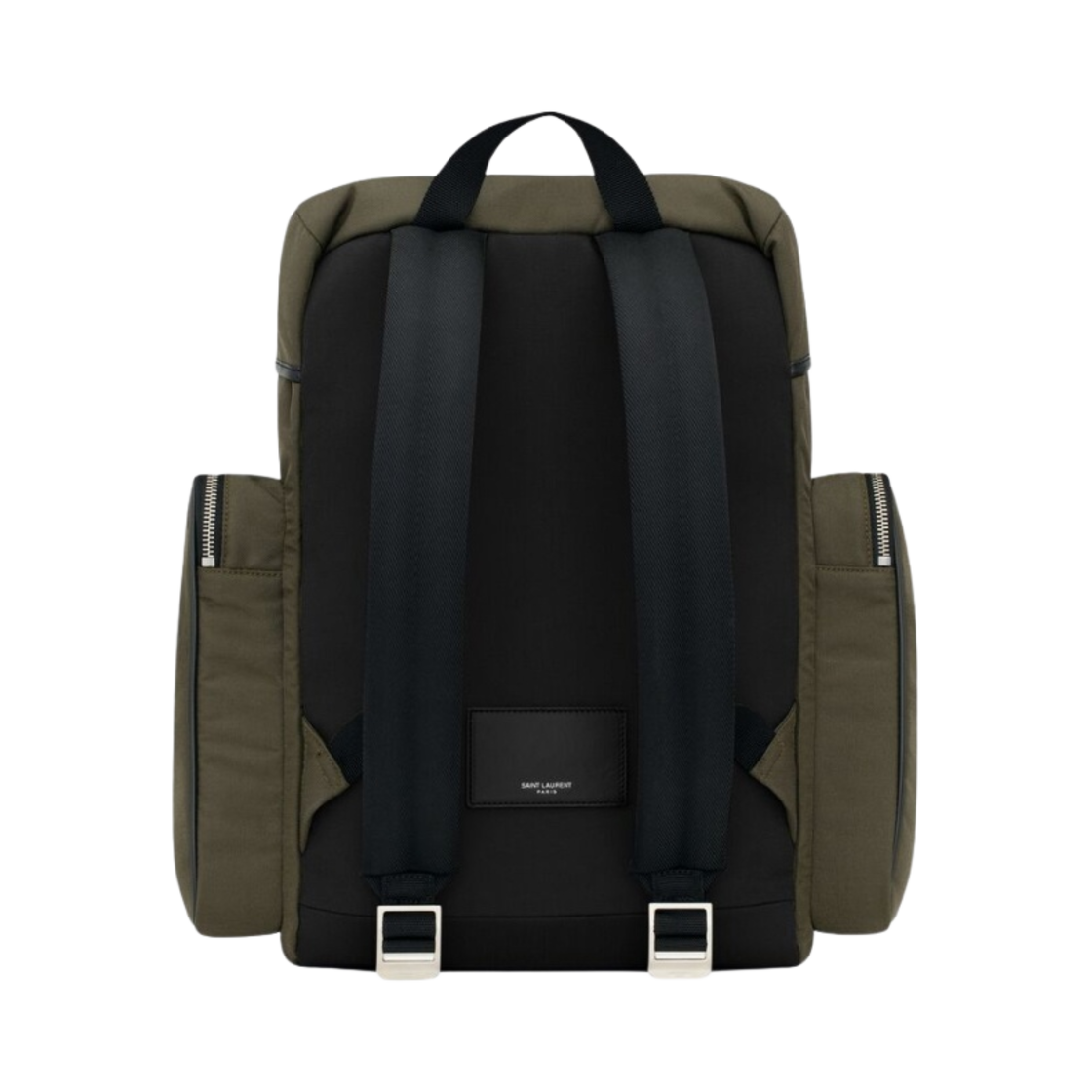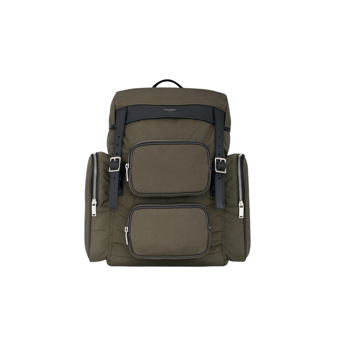 생로랑 캔버스 스무스 레더 나일론 시티 멀티포켓 백팩 카키