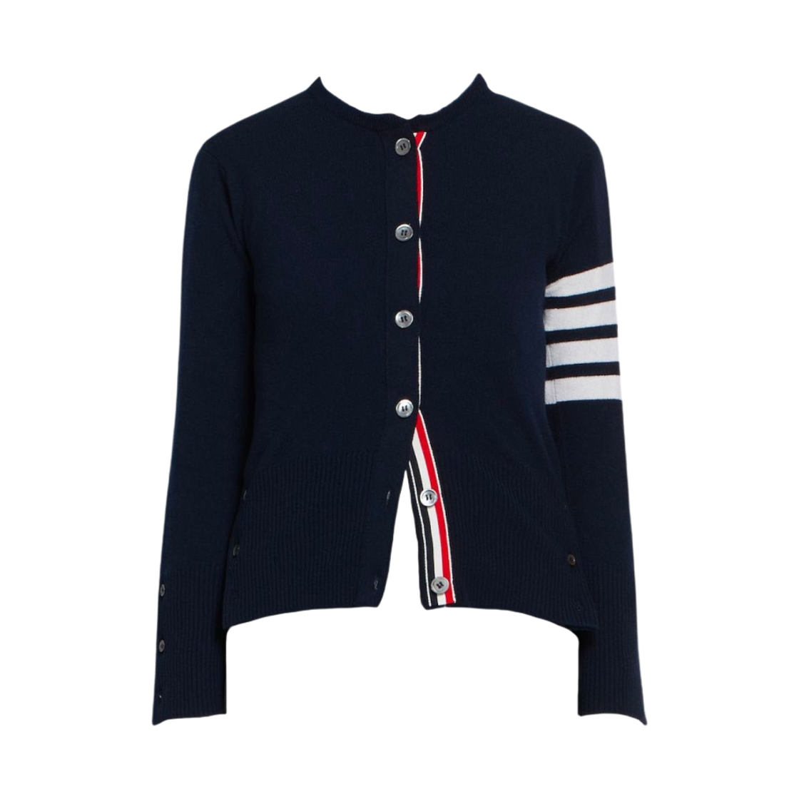 (W) Thom Browne 4-Bar Stripe Cardigan Navy