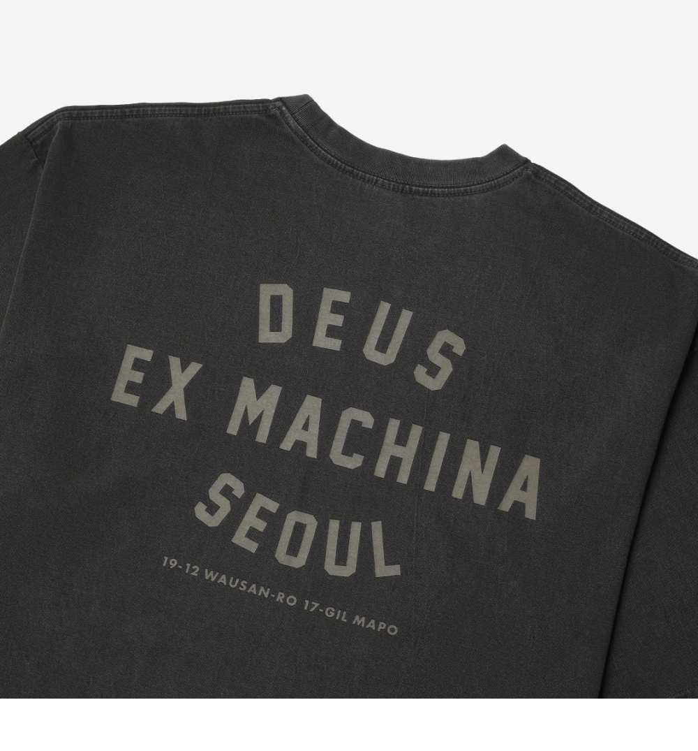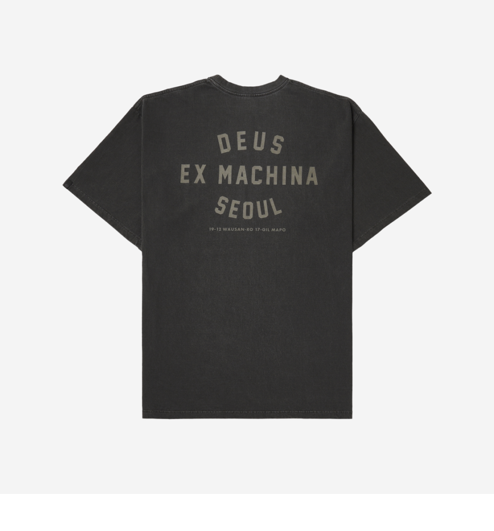 데우스 엑스 마키나 빈티지 워시드 서울 티셔츠 차콜 블랙