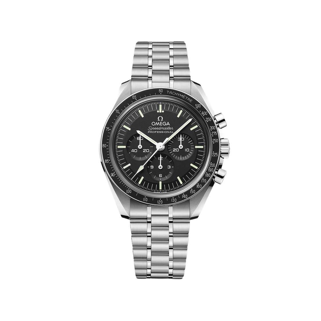 오메가 스피드마스터 문워치 프로페셔널 코 액시얼 마스터 크로노미터 크로노그래프 스틸 블랙 (투명 케이스백 버전)
