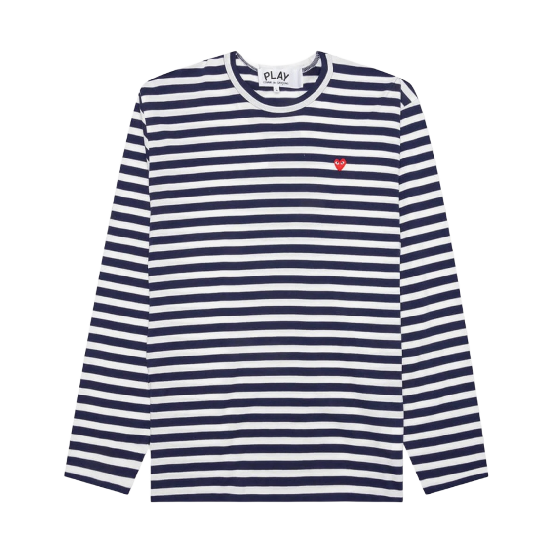 플레이 꼼데가르송 스몰 하트 스트라이프 롱슬리브 티셔츠 네이비 화이트