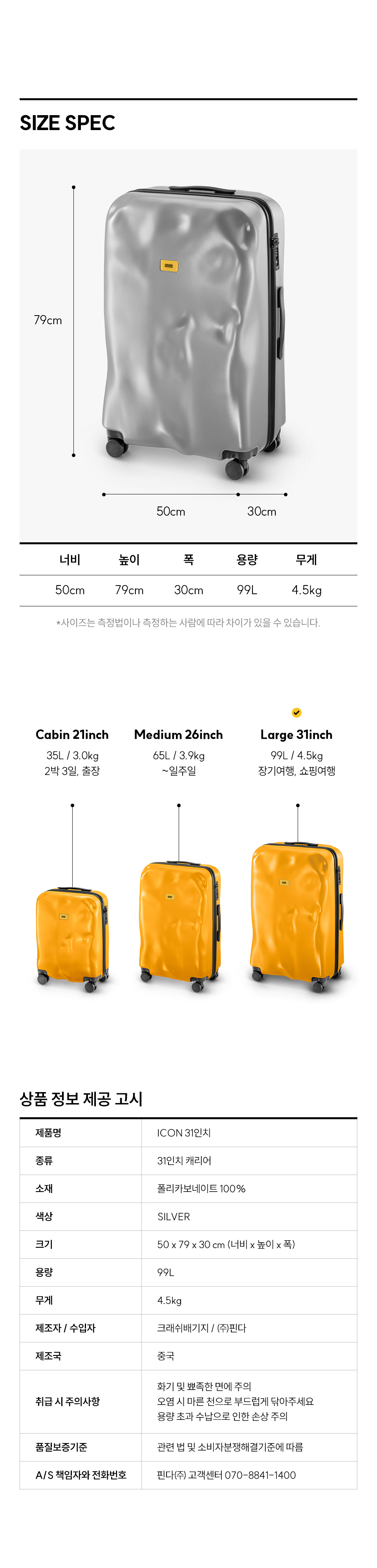 크래쉬배기지 아이콘 31인치 캐리어 실버