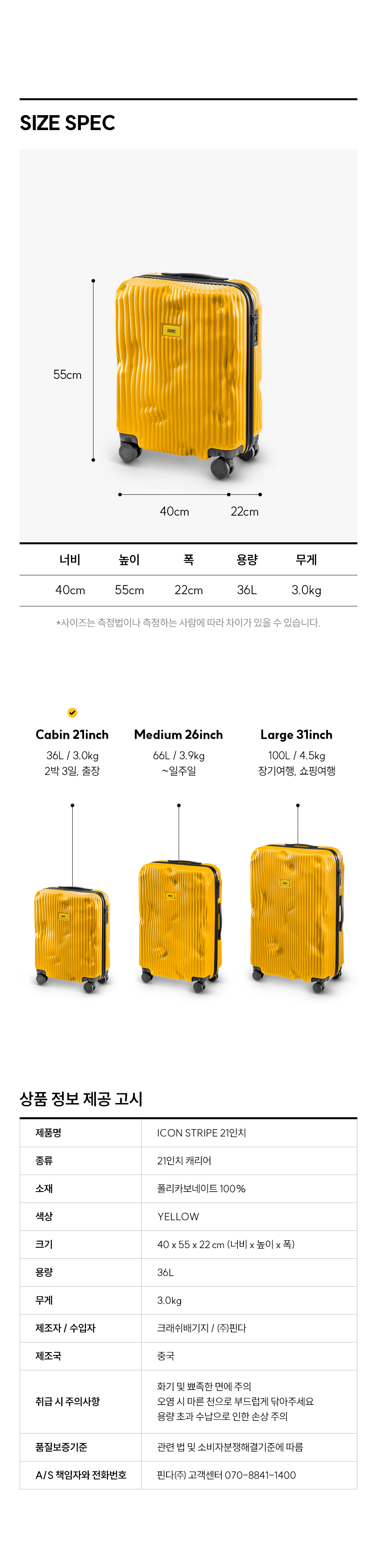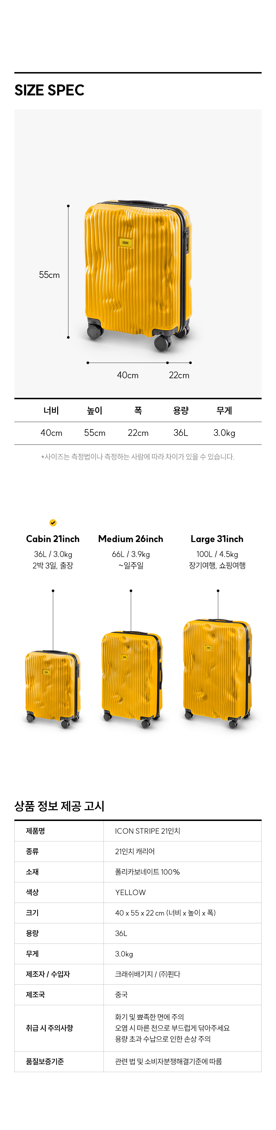 크래쉬배기지 아이콘 21인치 캐리어 스트라이프 옐로우