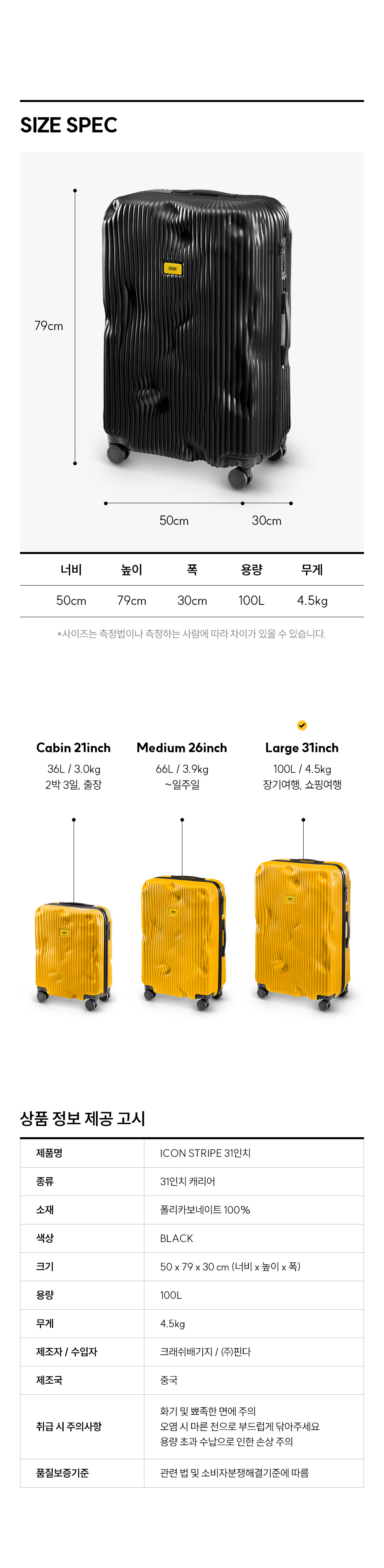 크래쉬배기지 아이콘 31인치 캐리어 스트라이프 블랙