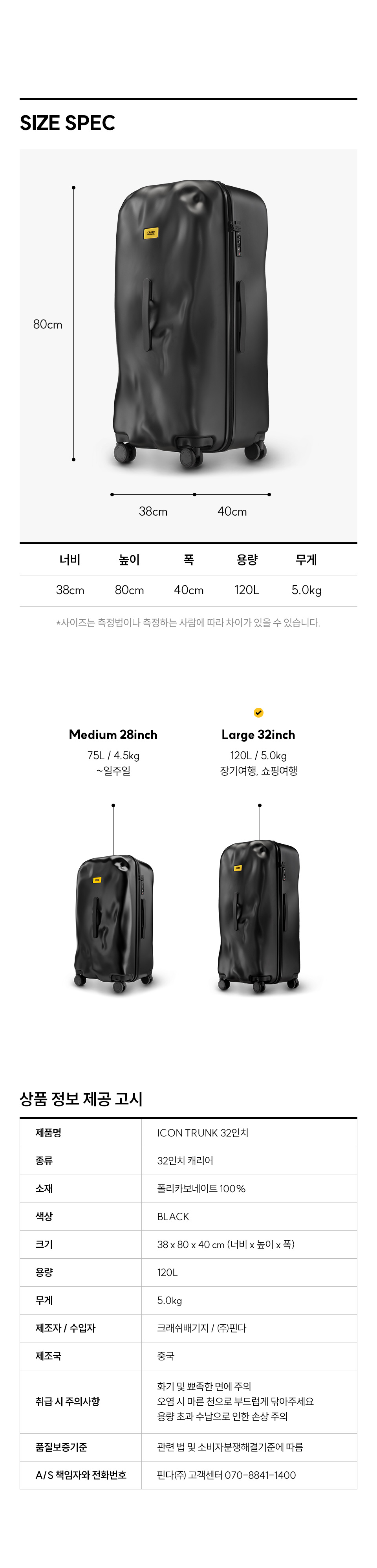 크래쉬배기지 아이콘 트렁크 라지 32인치 캐리어 블랙