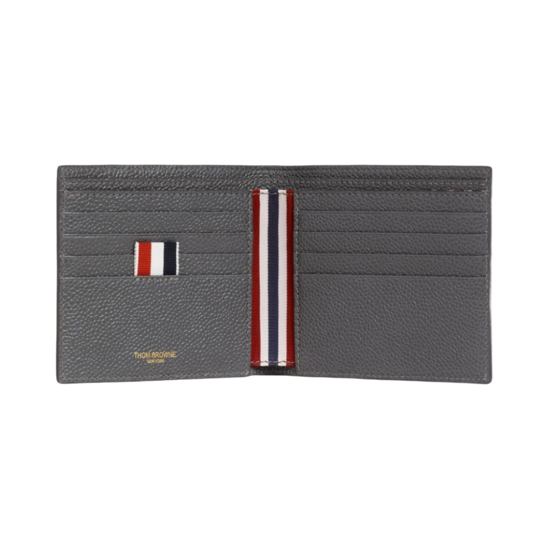 Thom Browne Pebble Grain Leather 4-Bar Applique Stripe Bill Fold Wallet Dark Grey - 23SS