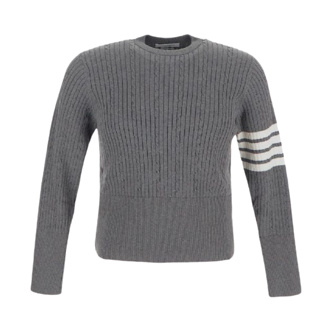 Thom Browne Baby Cable Rib Cotton 4-Bar Crew Neck Pullover Light Grey