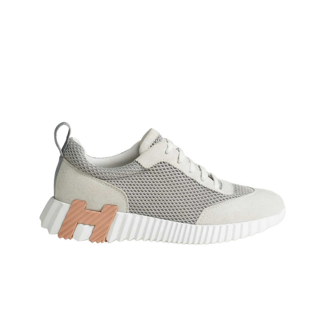 (W) Hermes Bouncing Sneakers Graphic Mesh Suede Goatskin & Gris Lulea Blanc