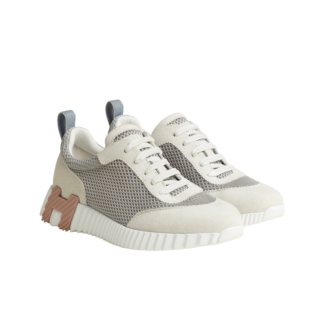 (W) 에르메스 바운싱 스니커즈 그래픽 메쉬 스웨이드 고트스킨 & 그리 룰레아 블랑