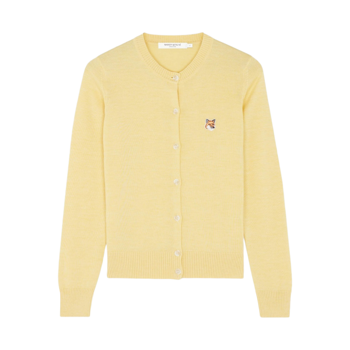 (W) Maison Kitsune Fox Head Patch Adjusted R-Neck Cardigan Soft Yellow