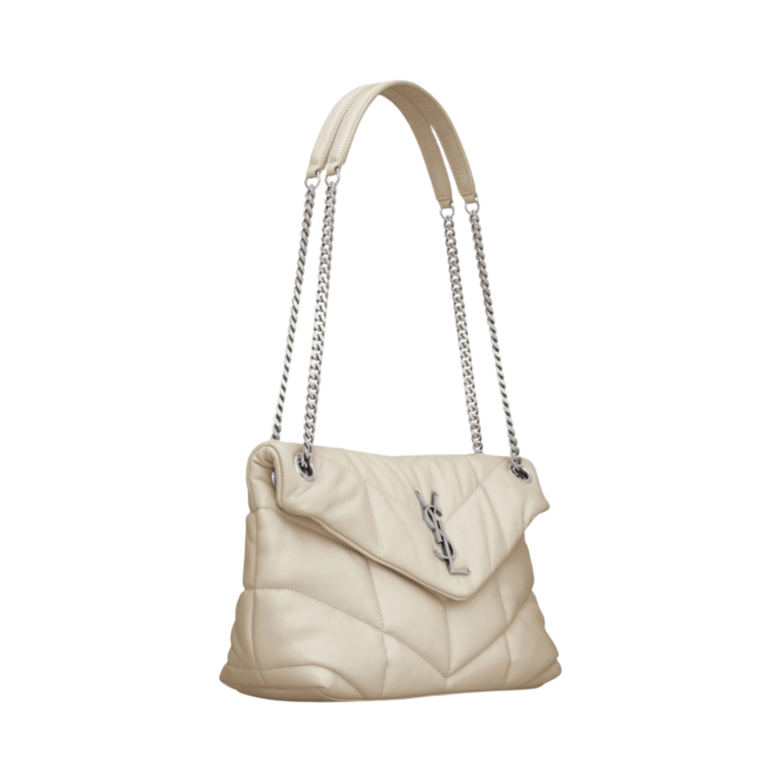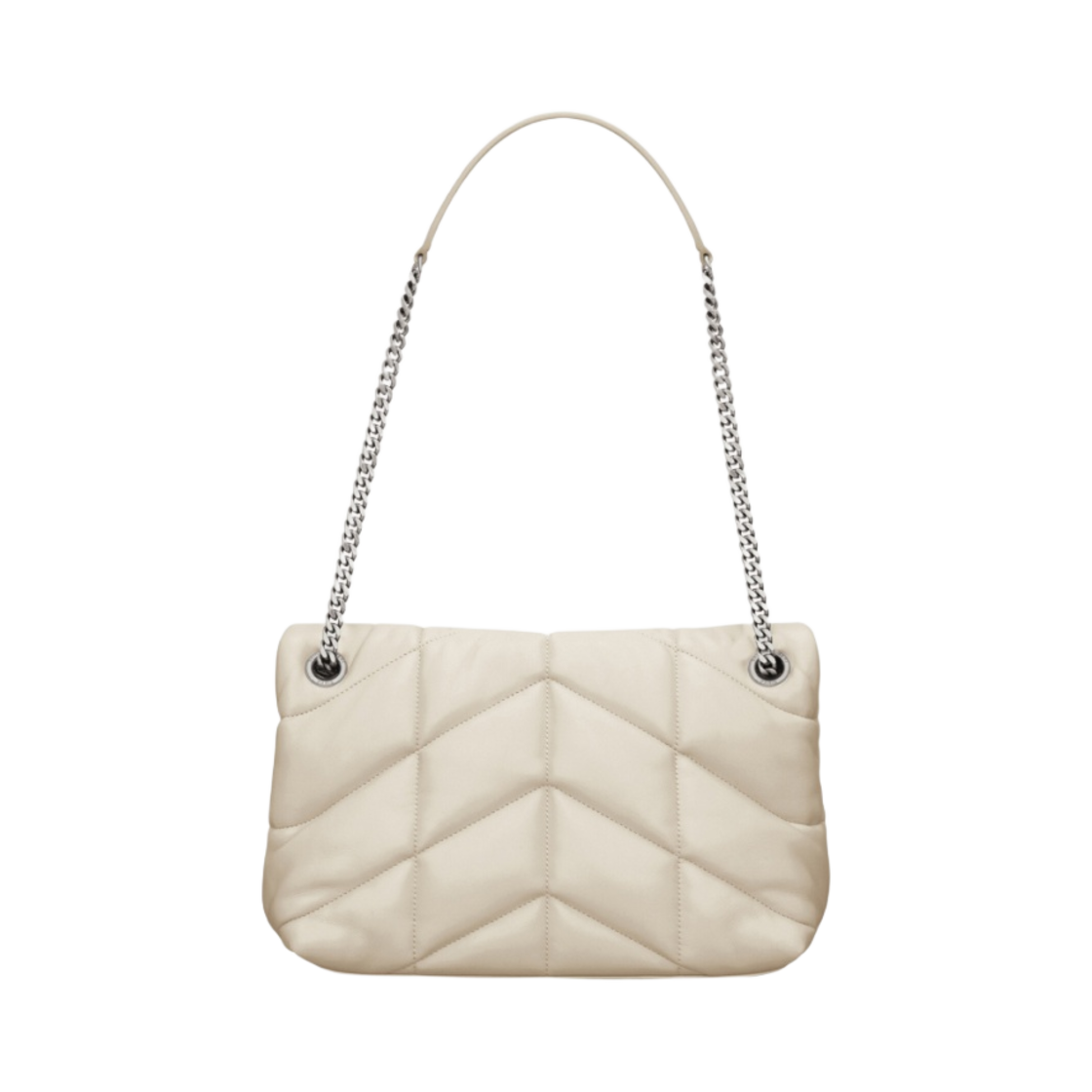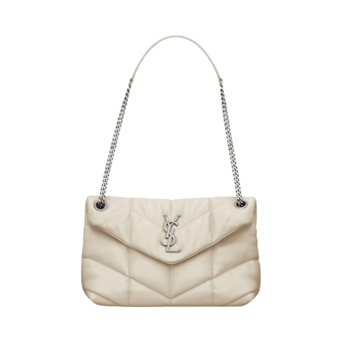Saint Laurent Puffer Small Chain Bag in Quilted Lambskin Blanc Vintage