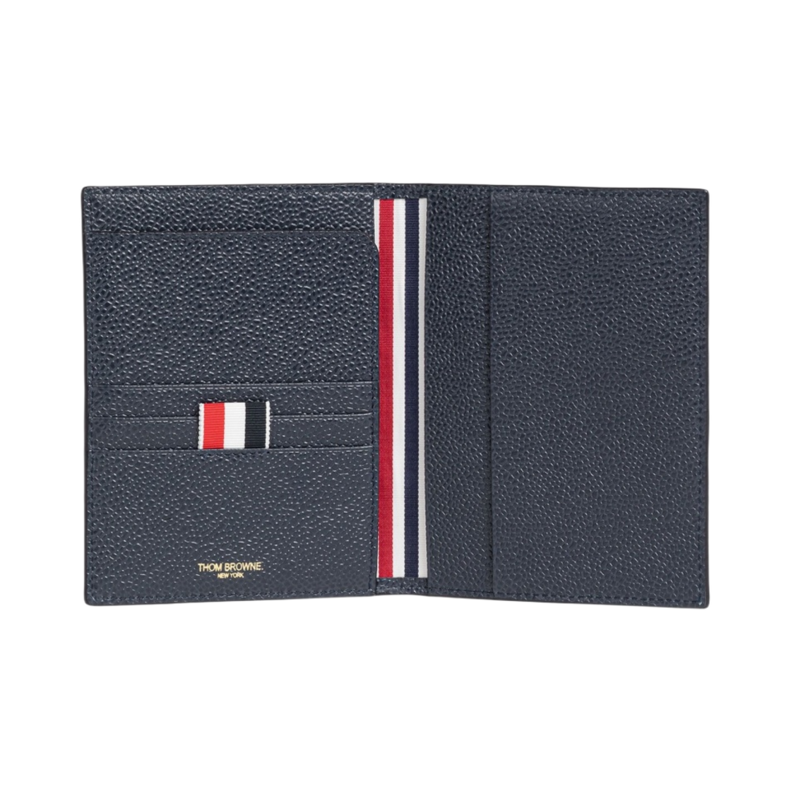 Thom Browne Pebble Grain Leather 4-Bar Passport Holder Navy