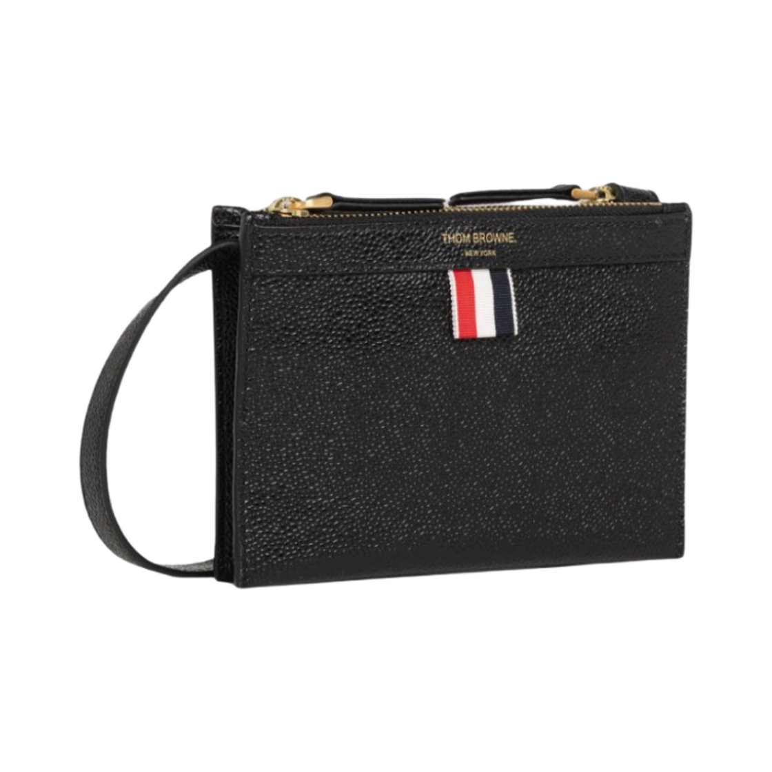 톰브라운 페블 그레인 레더 미니 도큐먼트 홀더 크로스바디 블랙