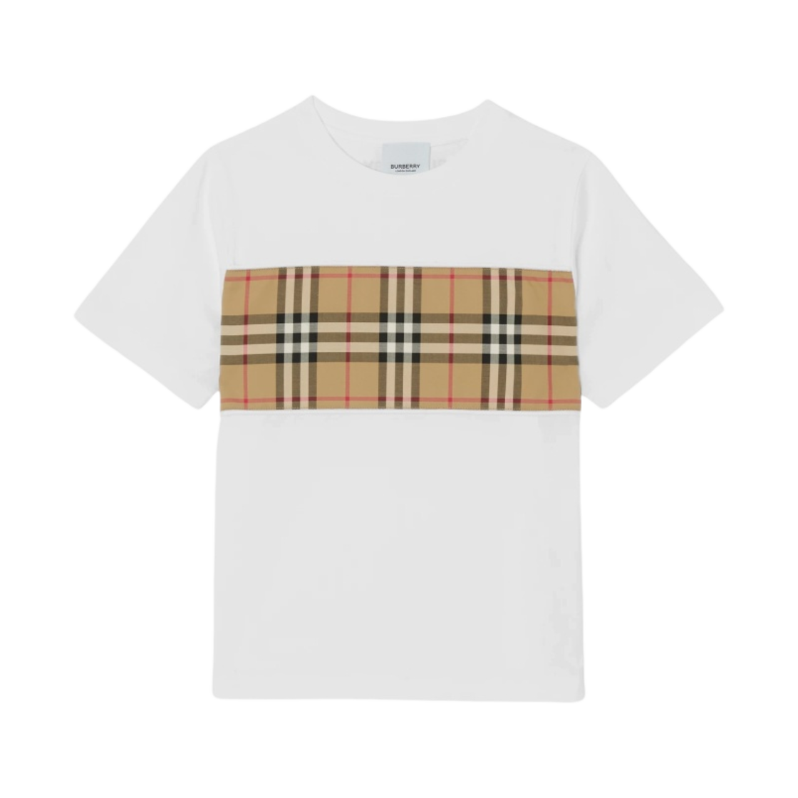 (Kids) Burberry Vintage Check Panel Cotton T-Shirt White