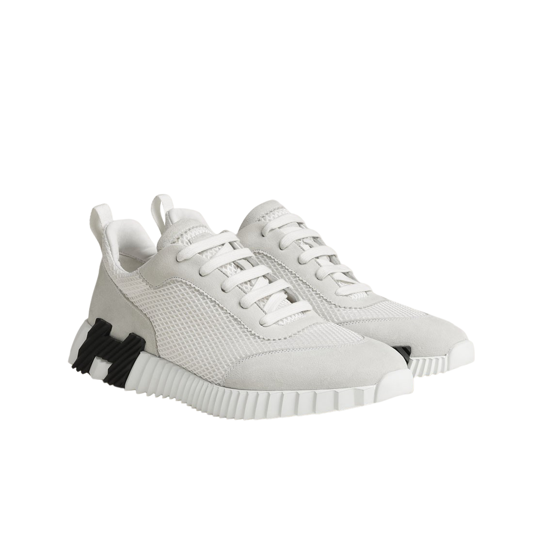 Hermes Bouncing Sneakers Graphic Mesh Suede Goatskin & Blanc