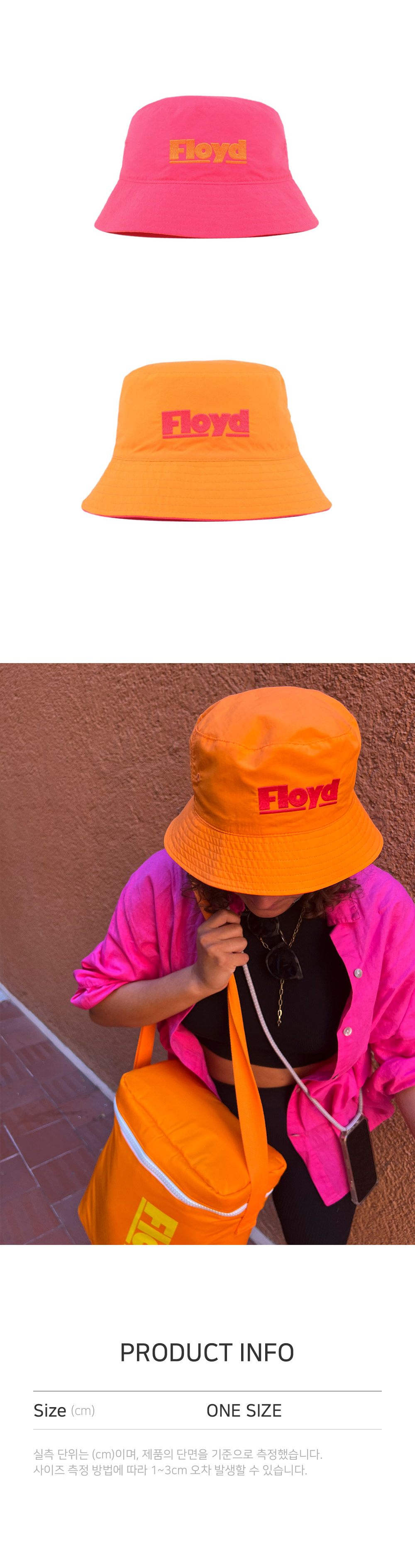 플로이드 버킷햇과 함께 나른한 여행을 즐겨보세요. 버킷 햇은 유행을 타지 않는 유일한 모자라고 해도 과언이 아닙니다. 아일랜드의 농부, 사우스 브롱크스의 래퍼, 지적인 언론인 등 모두가 선호하는 이 버킷햇은 더위가 계속되는 날씨에도 시원함을 유지해 줄 것입니다. 2가지의 펑키한 컬러로 출시되었으며, 리버시블 스타일로 상황에 따라 뒤집어 착용하여 다양한 연출이 가능합니다.