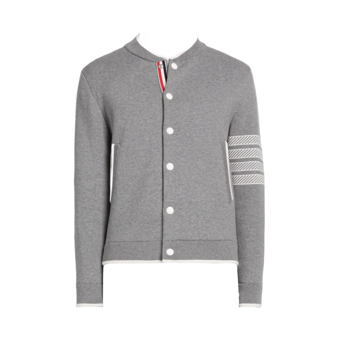 Thom Browne Anchor Jacquard 4-Bar Bomber Jacket Light Grey