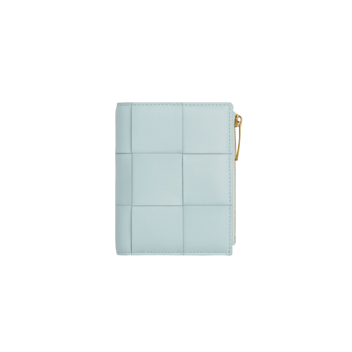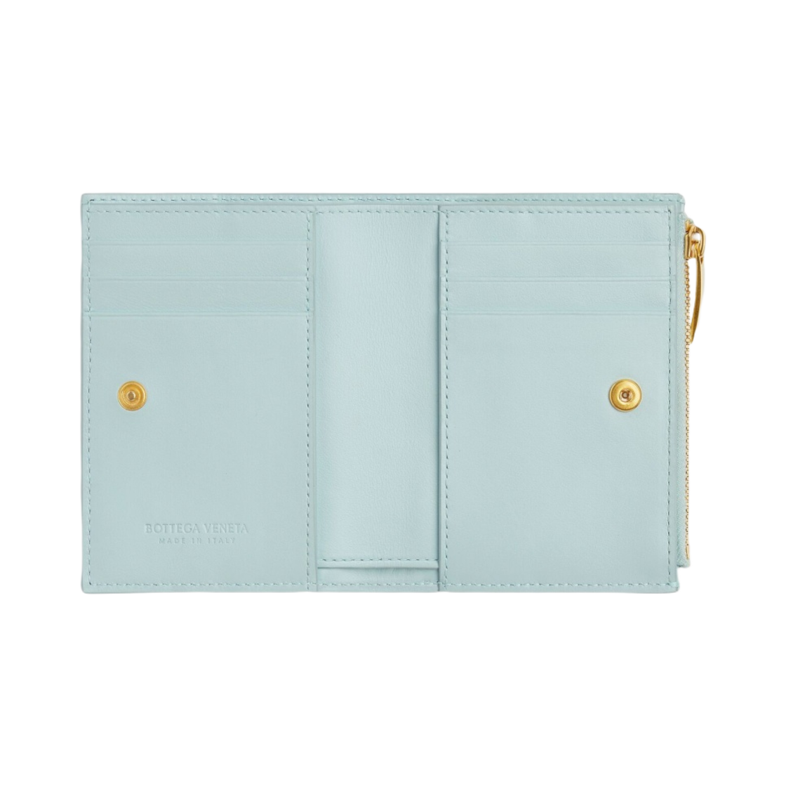 Bottega Veneta Small Cassette Bi-Fold Zip Wallet Teal Washed