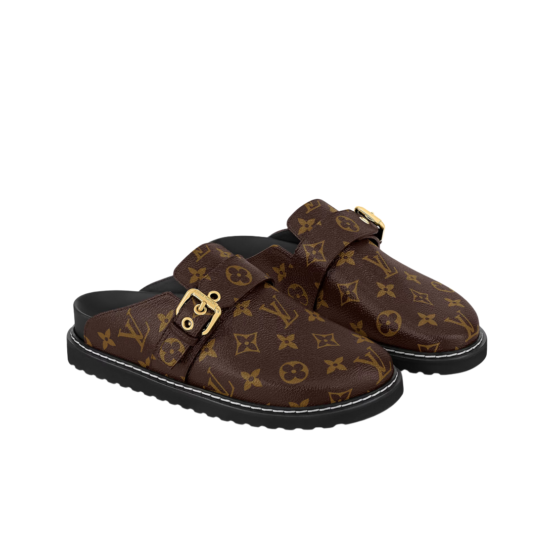 (W) 루이비통 LV 코지 플랫 컴포트 클로그 모노그램 카카오 브라운