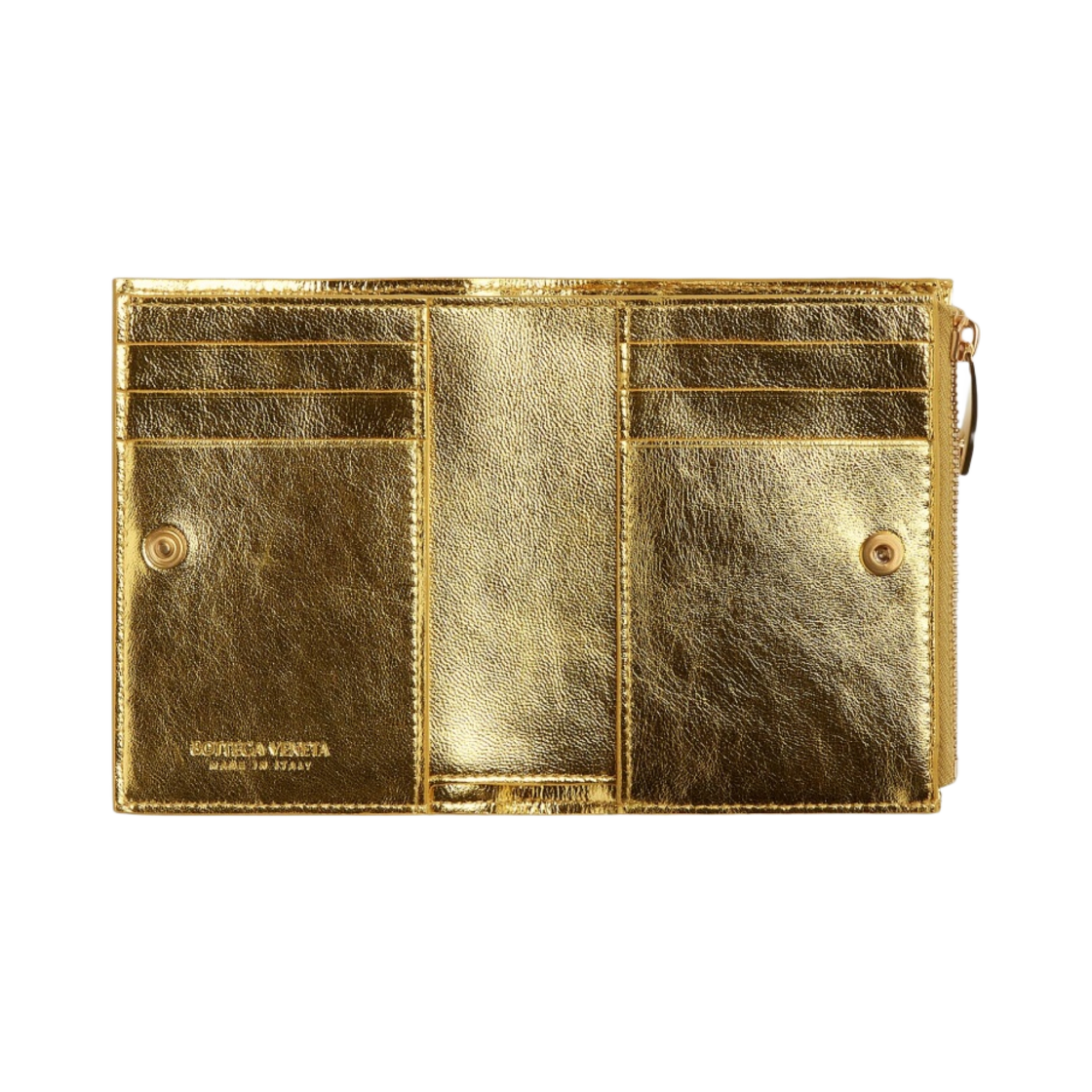 Bottega Veneta Small Intrecciato Bi-Fold Zip Wallet Gold