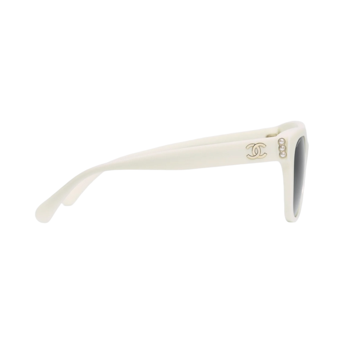 Chanel Square Sunglasses Acetate Glass Pearls & White Frame Grey Lenses Asian Fit