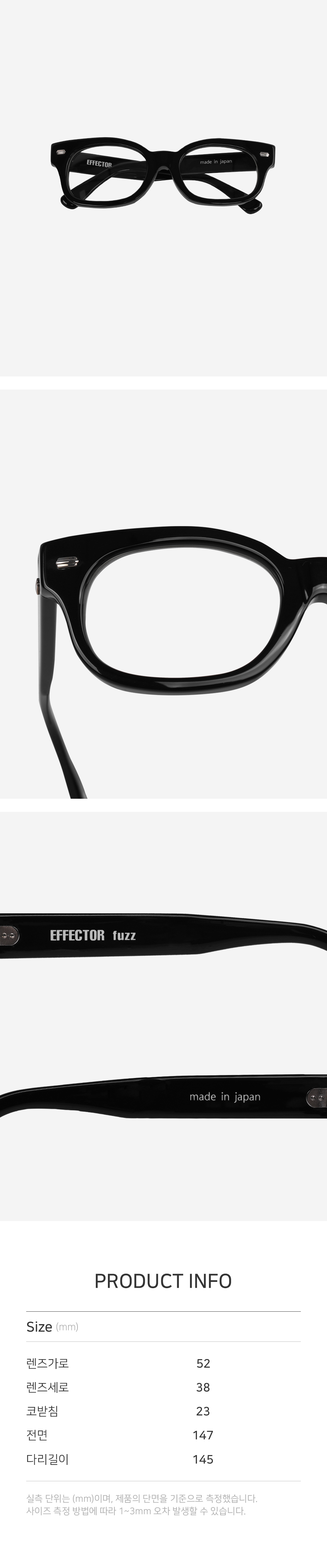 *안경테에 장착되어있는 렌즈는 프레임의 형태의 변형을 막기 위한 플라스틱 데모렌즈입니다.