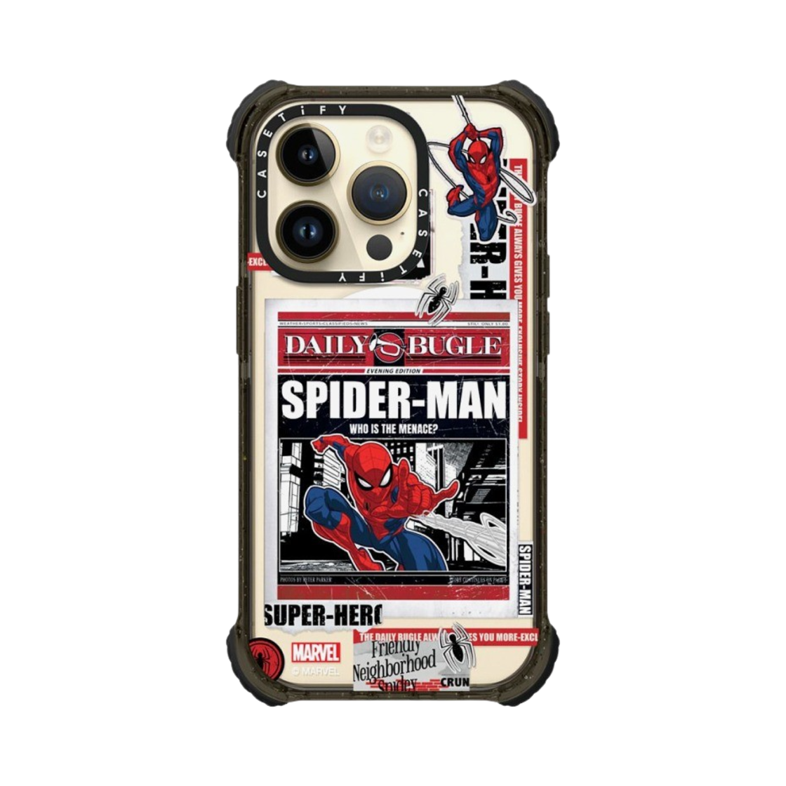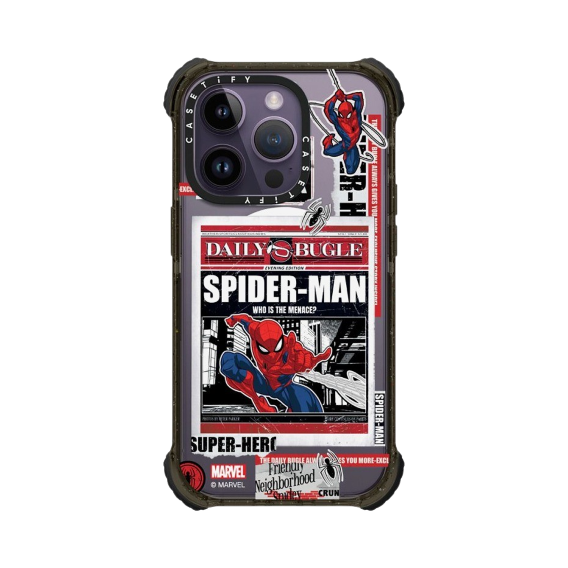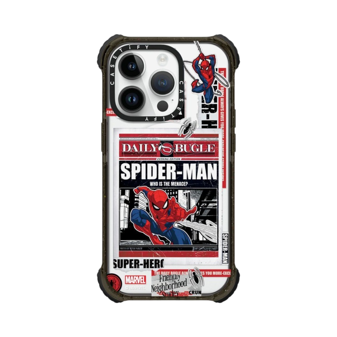 Casetify x Marvel iPhone Spider-Man Newspaper Sticker Magsafe Ultra Impact Case Clear Black