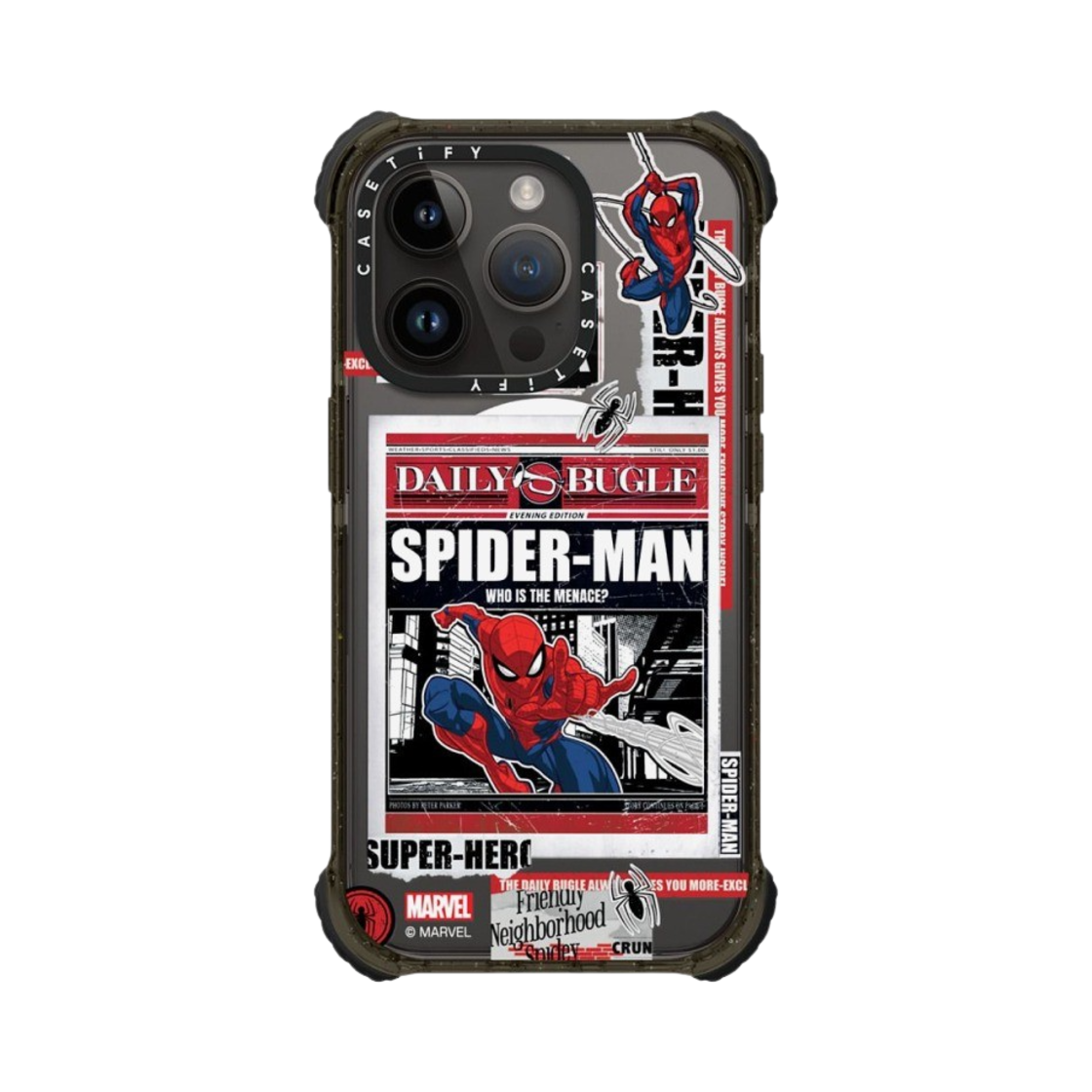 케이스티파이 x 마블 아이폰 스파이더맨 뉴스페이퍼 스티커 맥세이프 울트라 임팩트 케이스 클리어 블랙
